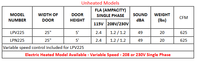 Mars LPV2 25 air curtains are sleek, quiet, with a consumer-friendly design that makes it perfect for drive thru window applications and also has a variable speed control, allowing you to turn the air column up or down to suit your needs. It has 1/6 HP motor, the standard color is Obsidian Black and heated options are available.