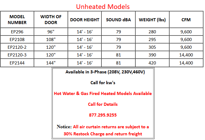 Mars EP (Extra Power) Air Curtain series features 3 HP motor(s) for protecting tall doors and openings. More power means a little more noise, making this suited primarily for industrial and warehouse applications, but it also means more protection and greater performance. It is capable of protecting openings up to 16ft high. The standard color is Titanium Silver and heated options are available.