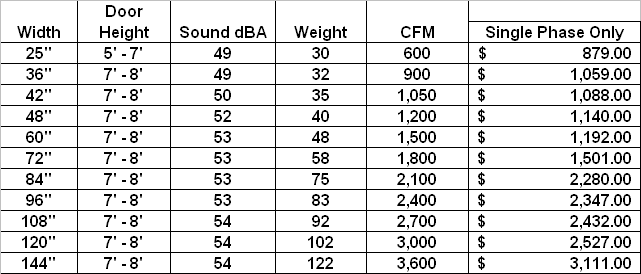Mars Single Phase LPV2 Air Curtains Available in Single Phase 115V or 208/230V