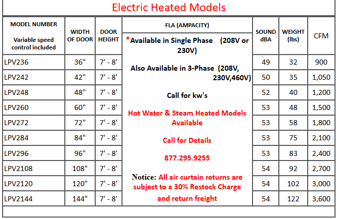 Mars Lo Pro Air Curtains are sleek, quiet, with a consumer-friendly design that makes it perfect for customer facing, commercial installations and also has a variable speed control, allowing you to turn the air column up or down to suit your needs. It has 1/6 HP motor, the standard color is Obsidian Black and heated options are available.